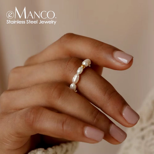 Emanco Korean Imitation Pearl Minimalist Pearl Finger Ring White round Pearl Ring Wedding Anniversary Gift