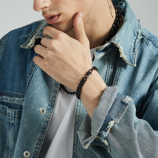 Cuban Link Black 6MM Wide Chain Bracelets Punk Mens Women Jewelry Gift, 19" Length