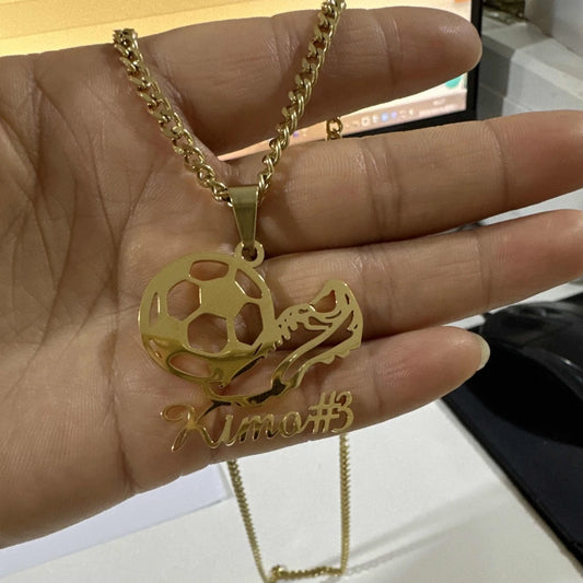 Custom Cuban Chain Playing Football Name Necklace Women Men Kid Popular Sport Jewelry Stainless Steel Soccer Nameplate Necklace