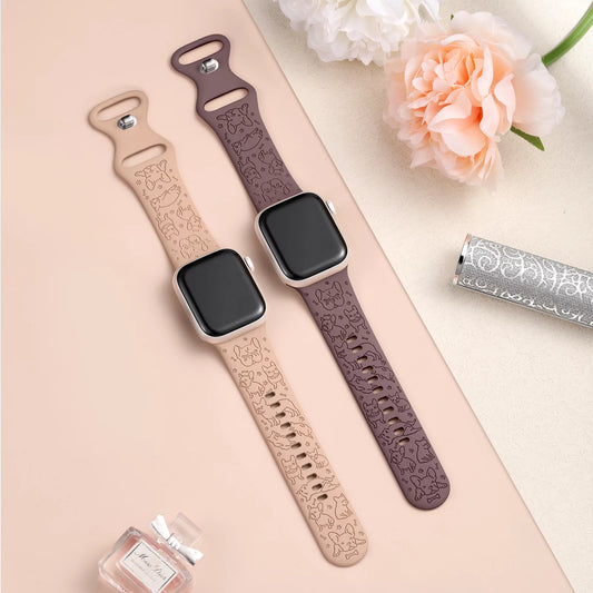 For Apple Watch Bands 38Mm 40Mm 41Mm for Women Lady Girls, 2 Pack Cute Pet Engraved Bands for Apple Watch Ultra Series 9 8 7 6 5 4 3 SE