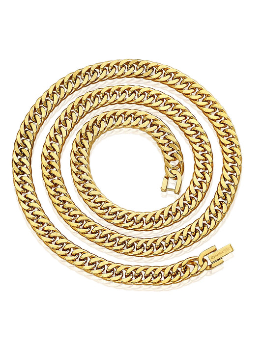Gold Plated Stainless Steel 8Mm Curb Chain Necklace 24"