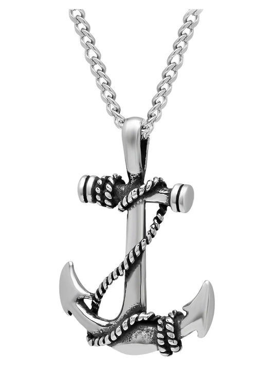 Men'S Stainless Steel Roped Anchor Pendant Necklace